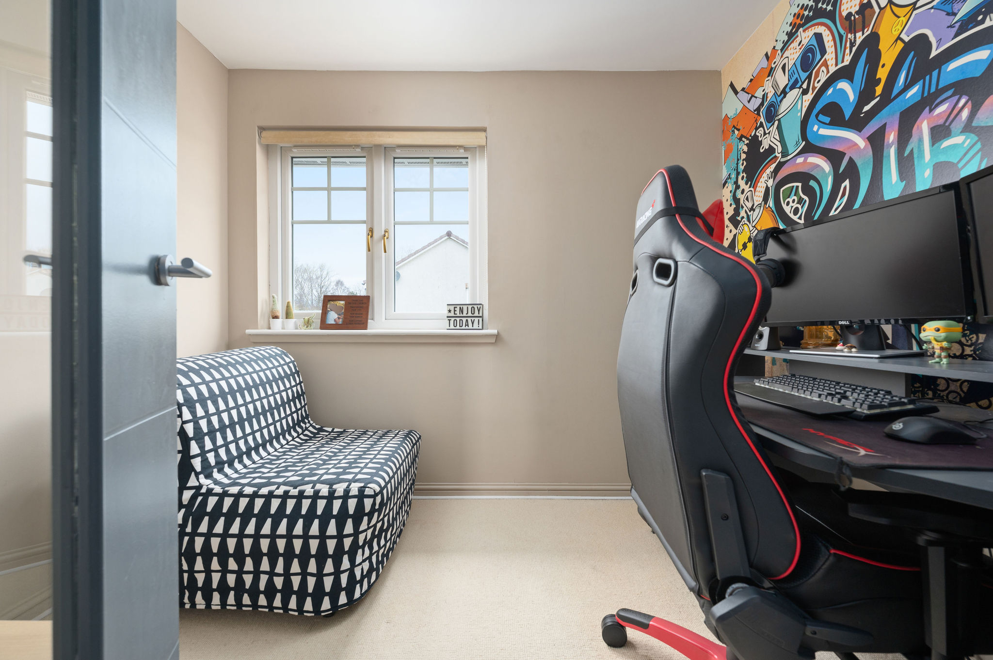 With a pristine interior, detached garage, and superb outdoor spaces designed for relaxation and entertaining, this is a home that will appeal to a wide range of buyers, including first-time purchasers and families. A harmonious blend of soft tones and vibrant primary colours flows throughout the home, each complementing the other beautifully to create a warm, contemporary and visually engaging living space. The carefully curated colour palette, paired with quality materials and modern finishes, enhances the stylish, inviting atmosphere and gives the property a beautifully cohesive flow.