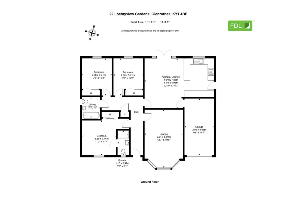 Cherished, upgraded 3 bed detached bungalow with luxury social family dining kitchen, luxury family bathroom and additional ensuite shower-room, plus garage and lovely gardens, nestling in the coveted Lochty Meadows Development.