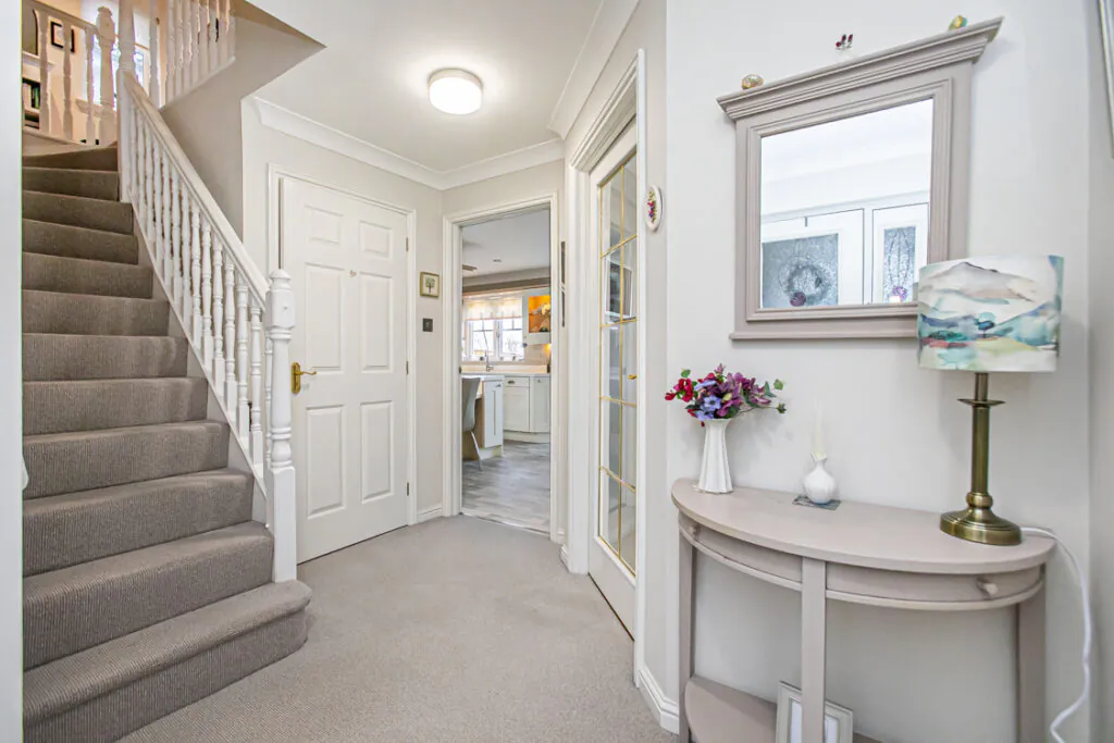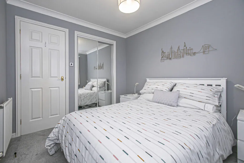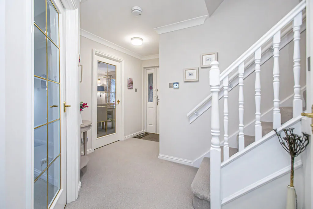 The upper level continues to impress with 4 excellent bedrooms. The primary bedroom boasts 2 double fitted wardrobes and a beautifully finished modern en‑suite shower room. There are 3 further generous bedrooms, each offering great storage.