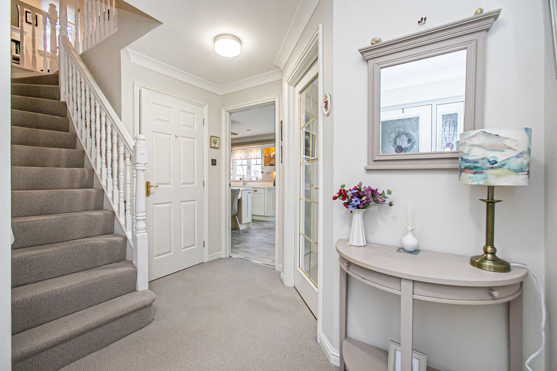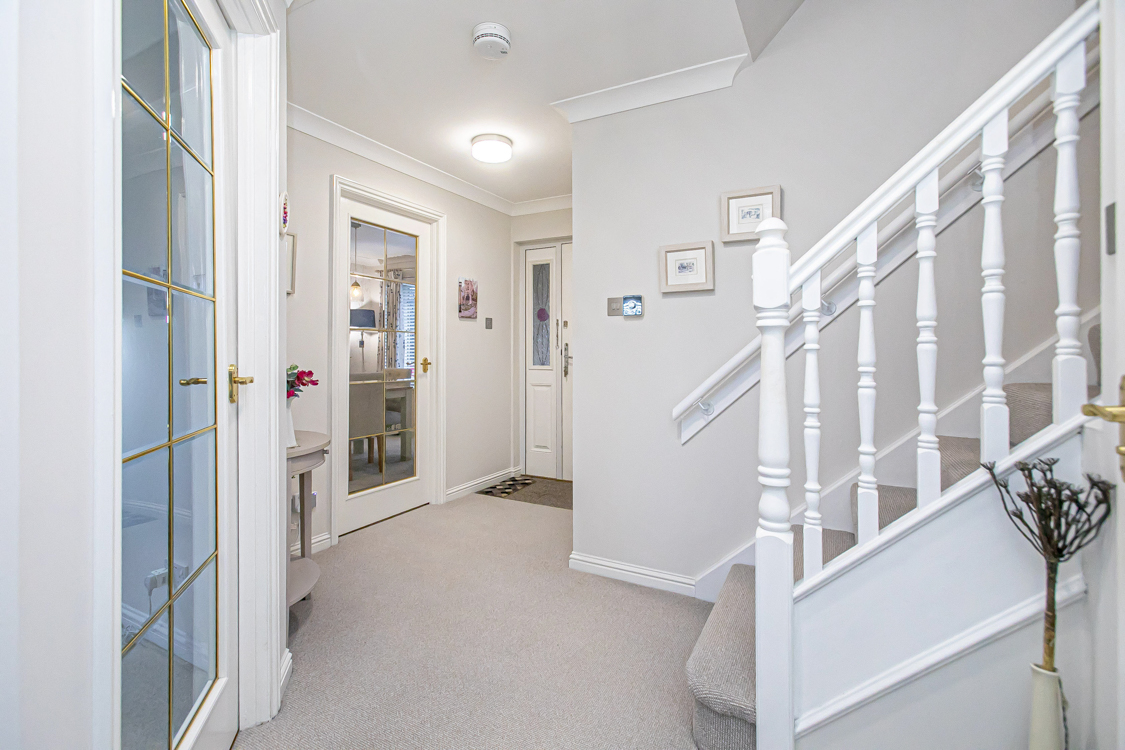 The upper level continues to impress with 4 excellent bedrooms. The primary bedroom boasts 2 double fitted wardrobes and a beautifully finished modern en‑suite shower room. There are 3 further generous bedrooms, each offering great storage.