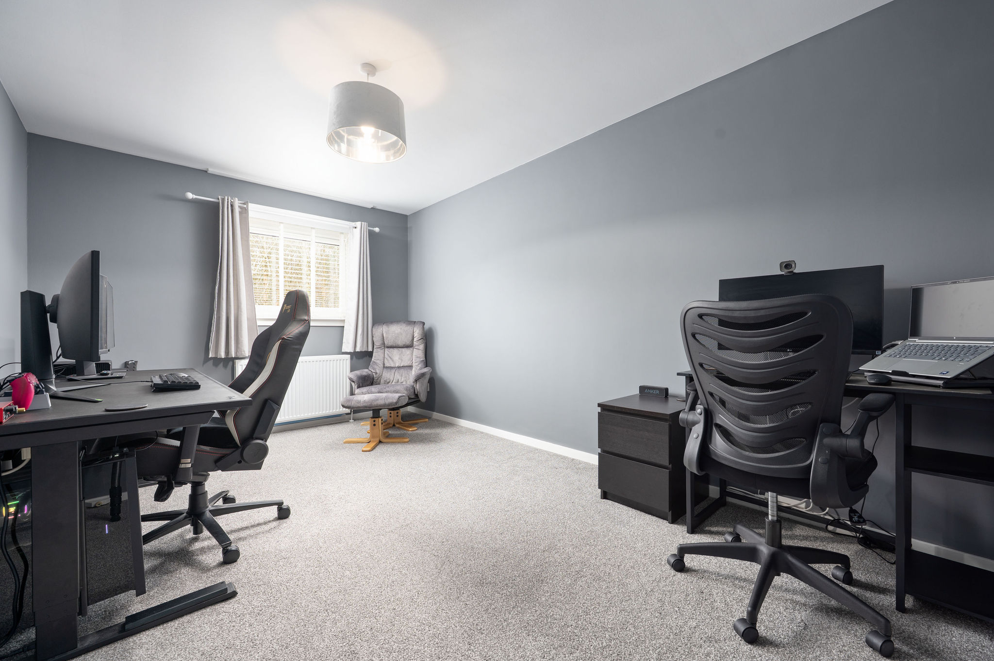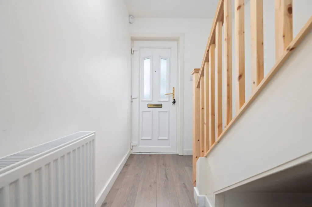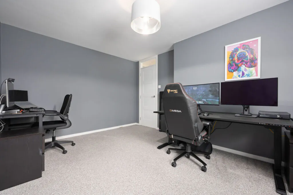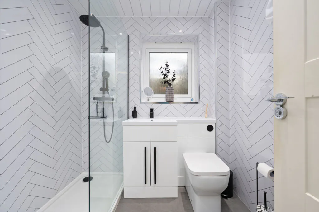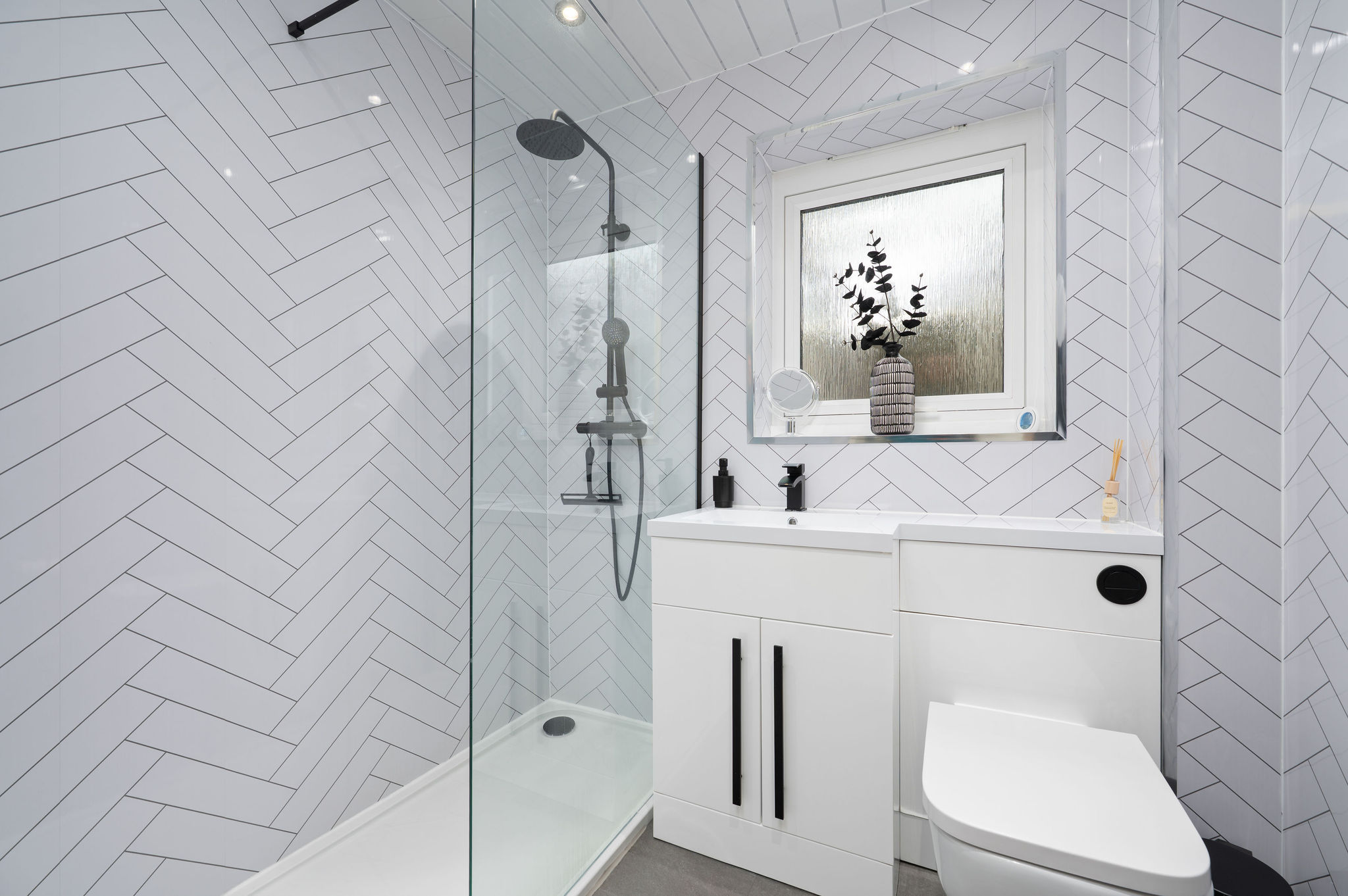 Upstairs, there are 2 spacious double bedrooms with excellent built-in storage options. The stylish shower room is finished with modern wet‑wall panelling and includes a luxurious overhead rainfall shower accompanied by a hand‑held spray.