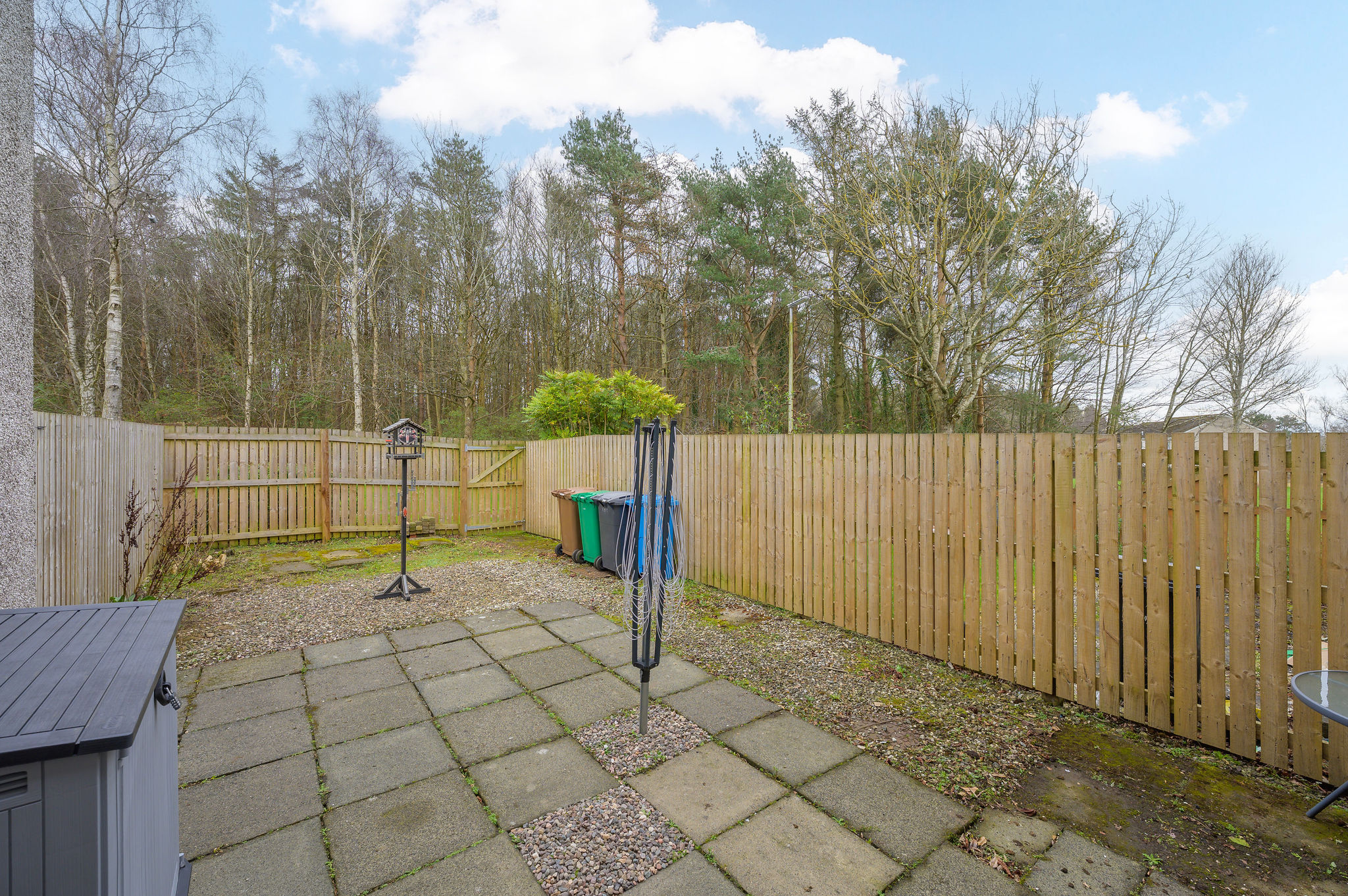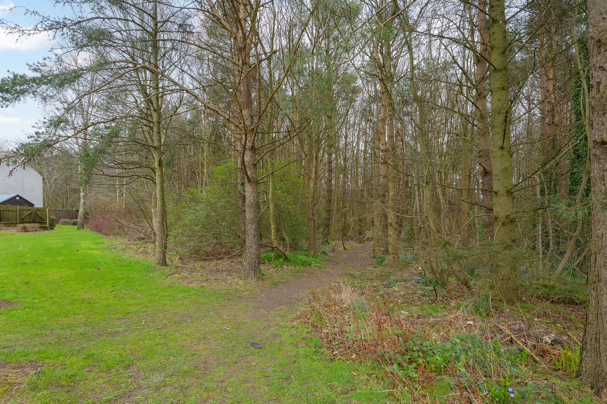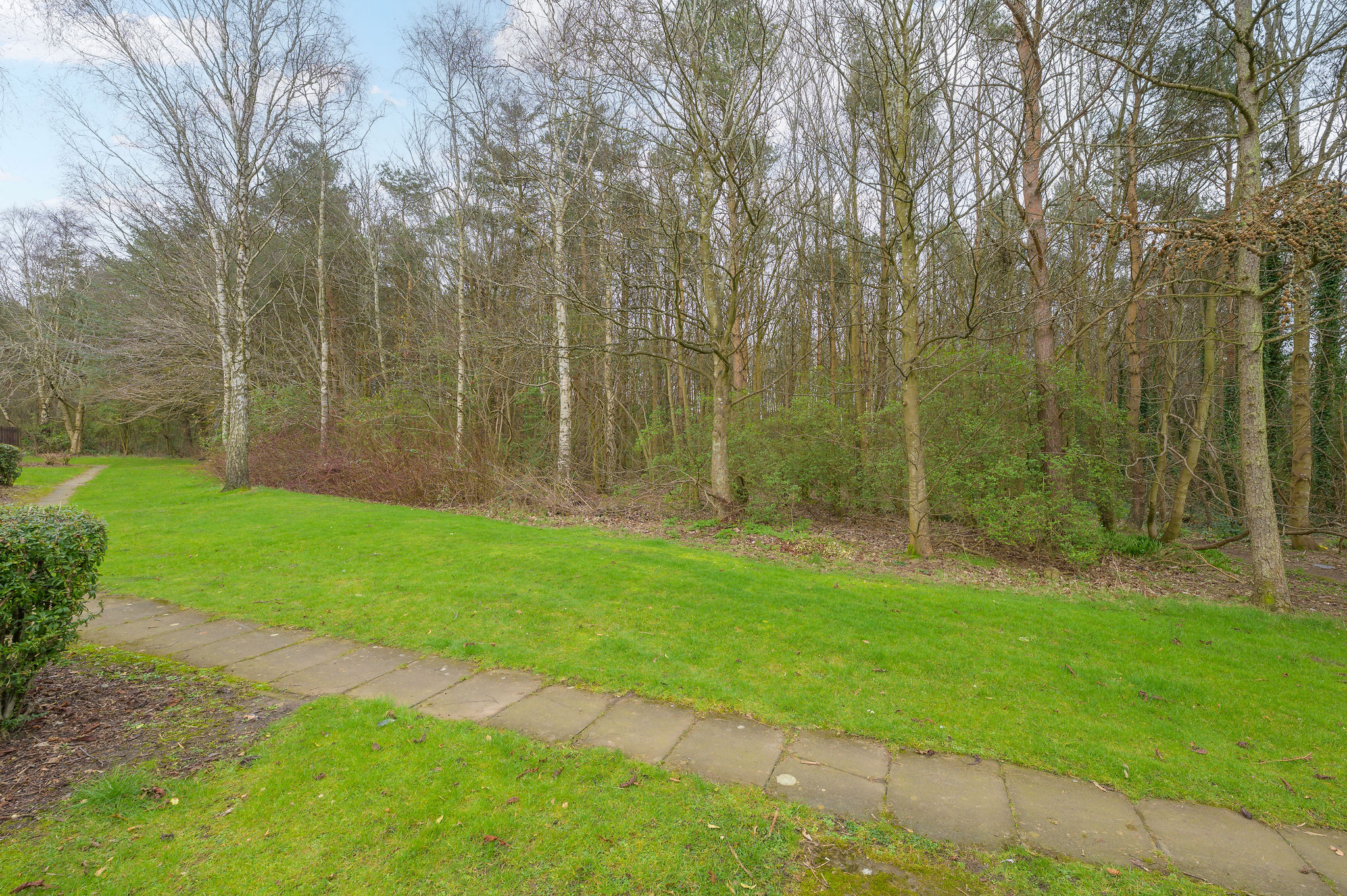 The private rear garden has been thoughtfully laid out to provide a peaceful outdoor retreat, ideal for families, social gatherings, or alfresco dining. Backing directly onto woodland, the garden enjoys a wonderful sense of privacy, and a rear gate offers immediate access to scenic woodland walks.