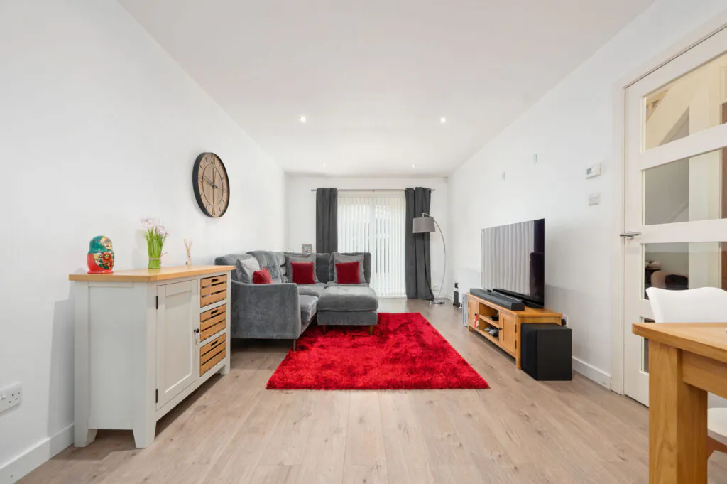 To the front, there is excellent parking availability and an attractive garden area featuring decking, accessed directly from the lounge’s patio doors.