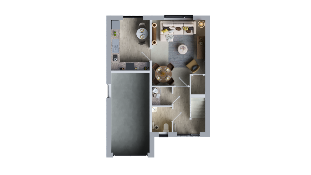 A spacious ground floor hallway welcomes you to the ground floor of the 3 bedroom Mulberry, giving access to a downstairs cloakroom and convenient laundry area. Sitting to the rear of the property, with access to the garden, a fully functional kitchen/dining room with an array of wall and base units, plus a 4 zone induction hob, fan assisted oven and integral cooker hood. The lounge, which also boasts additional dining space, sits adjacent with a large window overlooking the garden.